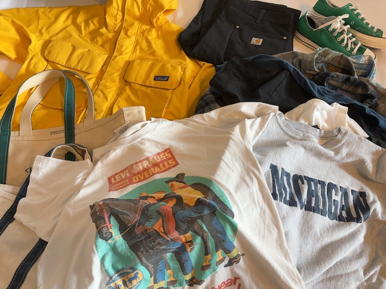 深みのあるオリーブ×ブラウンを基調とした、ネイティブ調の総柄デザイン。 トレードウィンズ柄。 総柄の中でもあまり見ない希少なデザイン。 嬉しいUSA製。 落ち着いた配色でコーディネートにも取り入れやすく90sパタゴニアの中でも人気の高い総柄モデルです。 MADE IN USA 【 size 】 表記:M 肩幅:55cm 身幅:59cm 袖丈:58cm 着丈:70cm ※多少の誤差はご了承ください 【 color 】 ネイディブ柄 【 material 】 100%polyester 【 condition 】 A フカフカコンディション。 S:デットストック、新品未使用 A:使用感が少なく綺麗な状態 B:使用感はあるが比較的綺麗な状態 C:着用には問題ないが多少のダメージやシミあり D:使用感、ダメージやシミがあり ■ used品・ ヴィンテージ品になります。 細かく検品は心掛けていますが、状態の方はコンディション・写真にてご確認お願い致します。ディスプレイにより写真の色味が多少変わってしまう場合ありますのでご理解の方よろしくお願いします。 ▪️ご購入後はused品であり返品・交換は受け付けておりませんので、気になることがありましたら購入前にお問い合わせお願い致します。 ご理解頂ける方のみご購入いただきますようお願い致します。