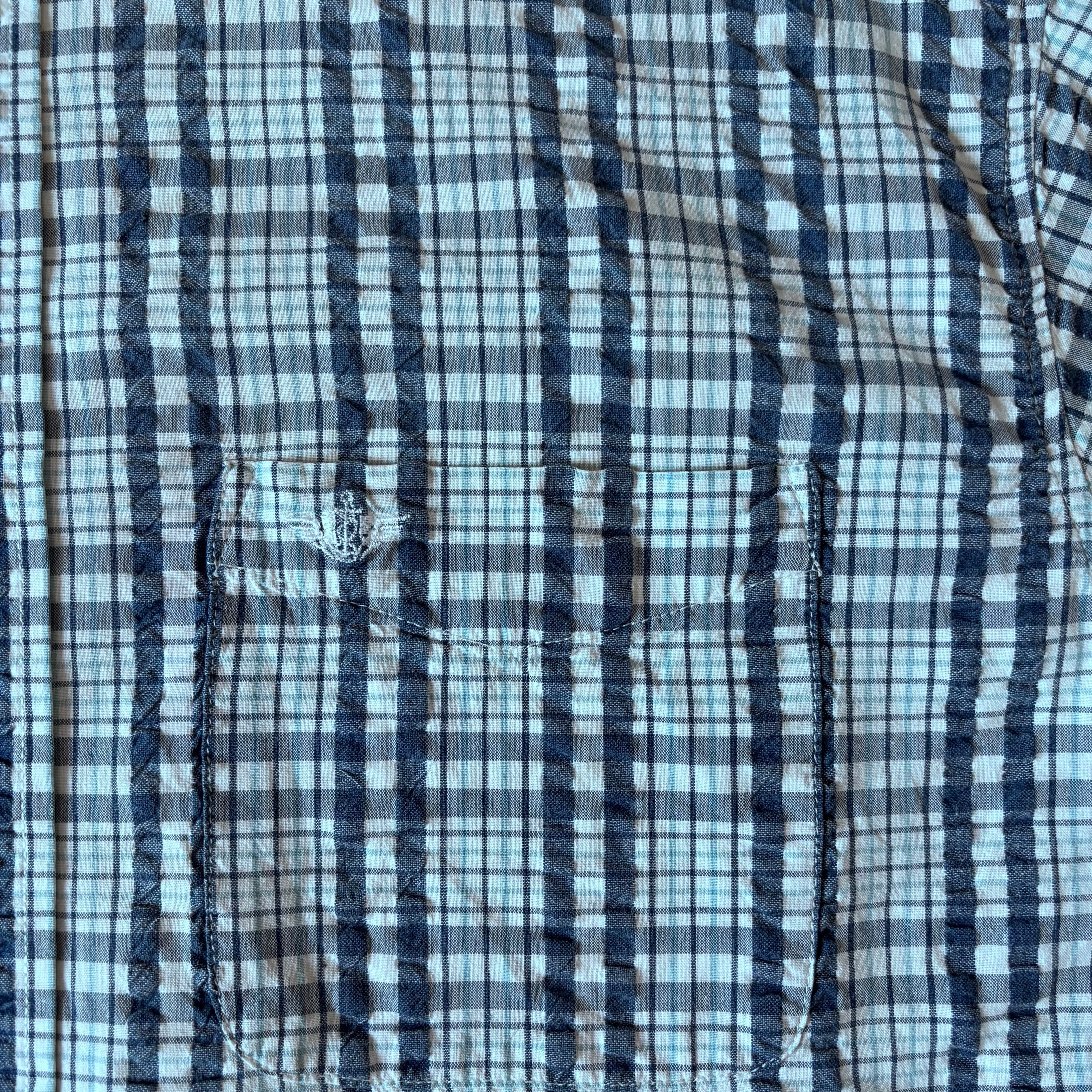 サッカー生地も人気がありサラッとおしゃれに着れるおすすめの一着。チェック柄も良い配色です。