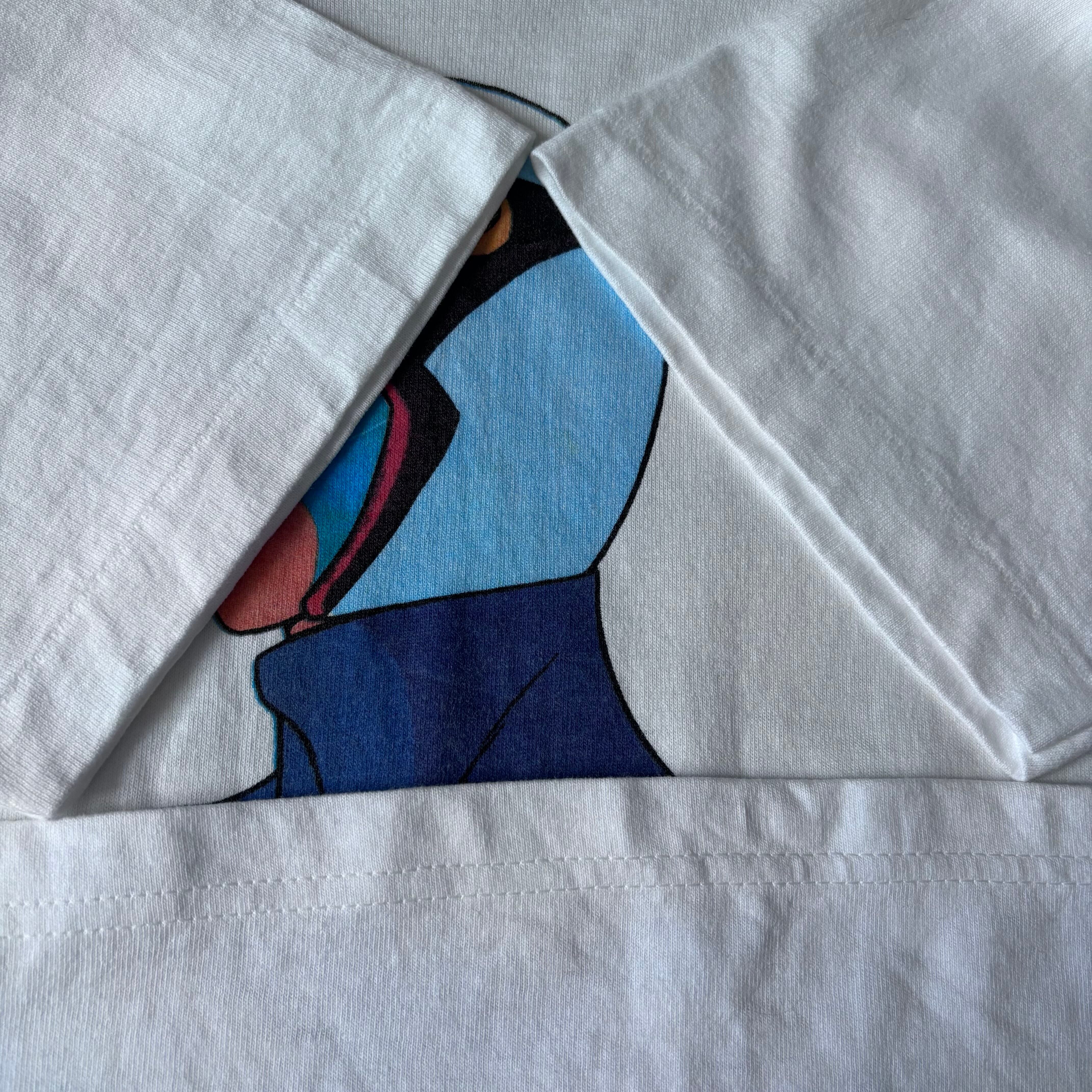 1970年代の名作アニメ" ガッチャマン "のヴィンテージT。両袖リブはシングルステッチ。