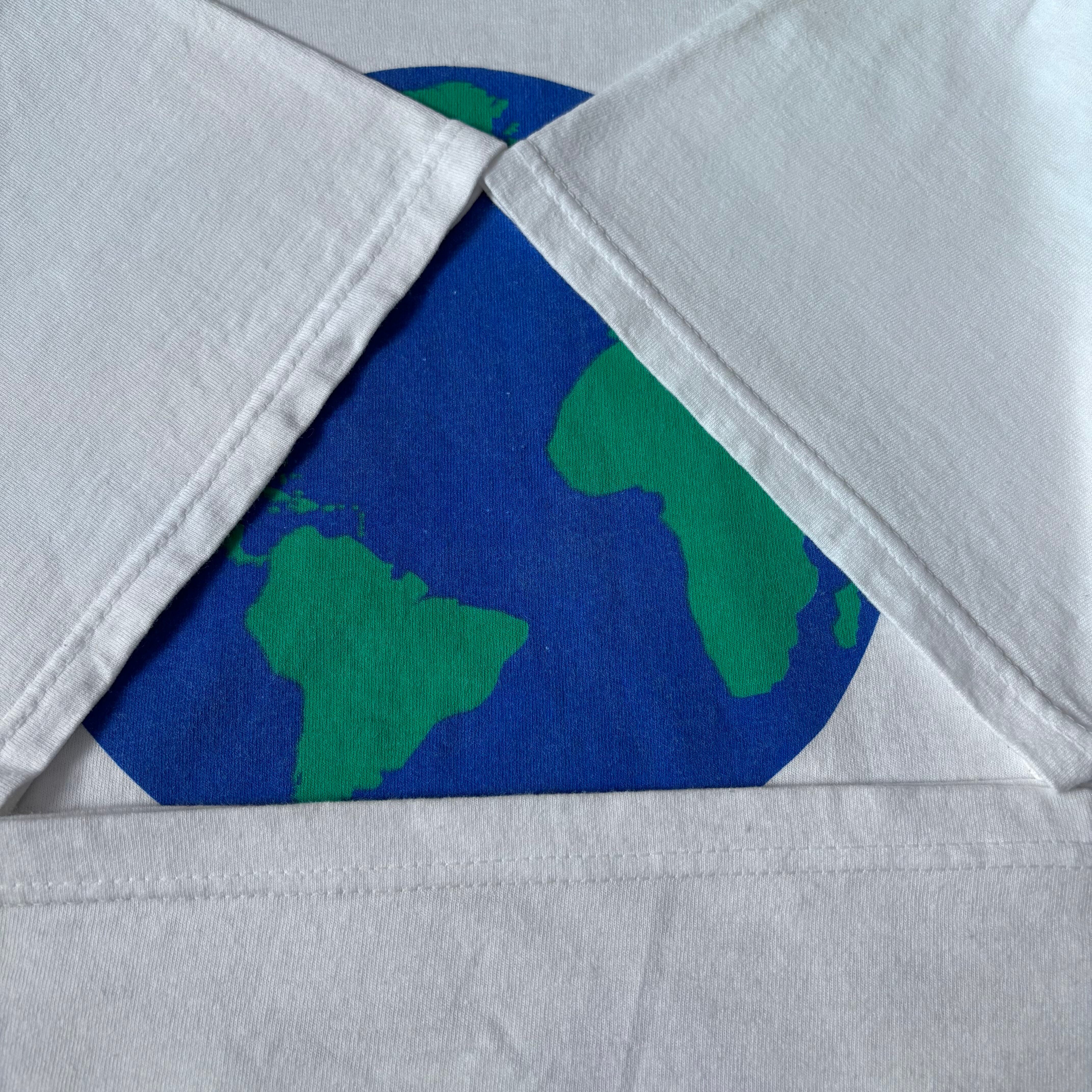 ホワイトボディに大きく地球がデザインされ、カラフルなロゴが目を惹くインパクトのある一枚です。
