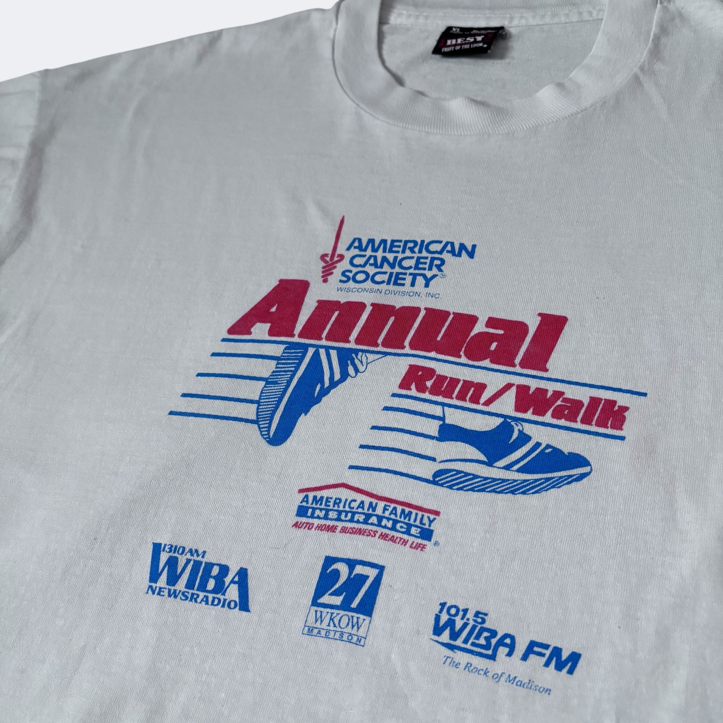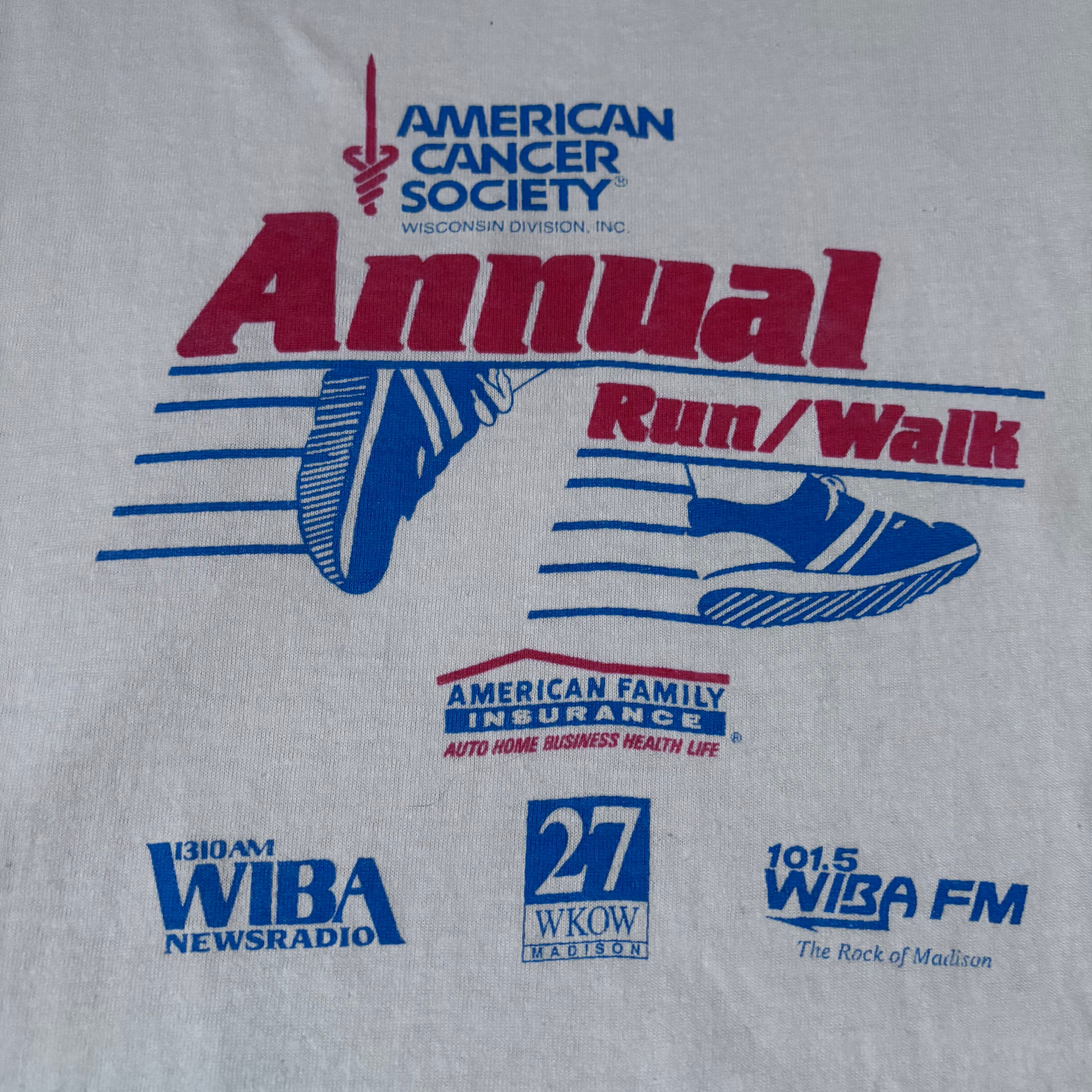 アメリカ製、チャリティーラン/ウォークイベントのグラフィックプリントされ、イラストと配色がシンプルで可愛いです。個人的に好きなデザインですね。