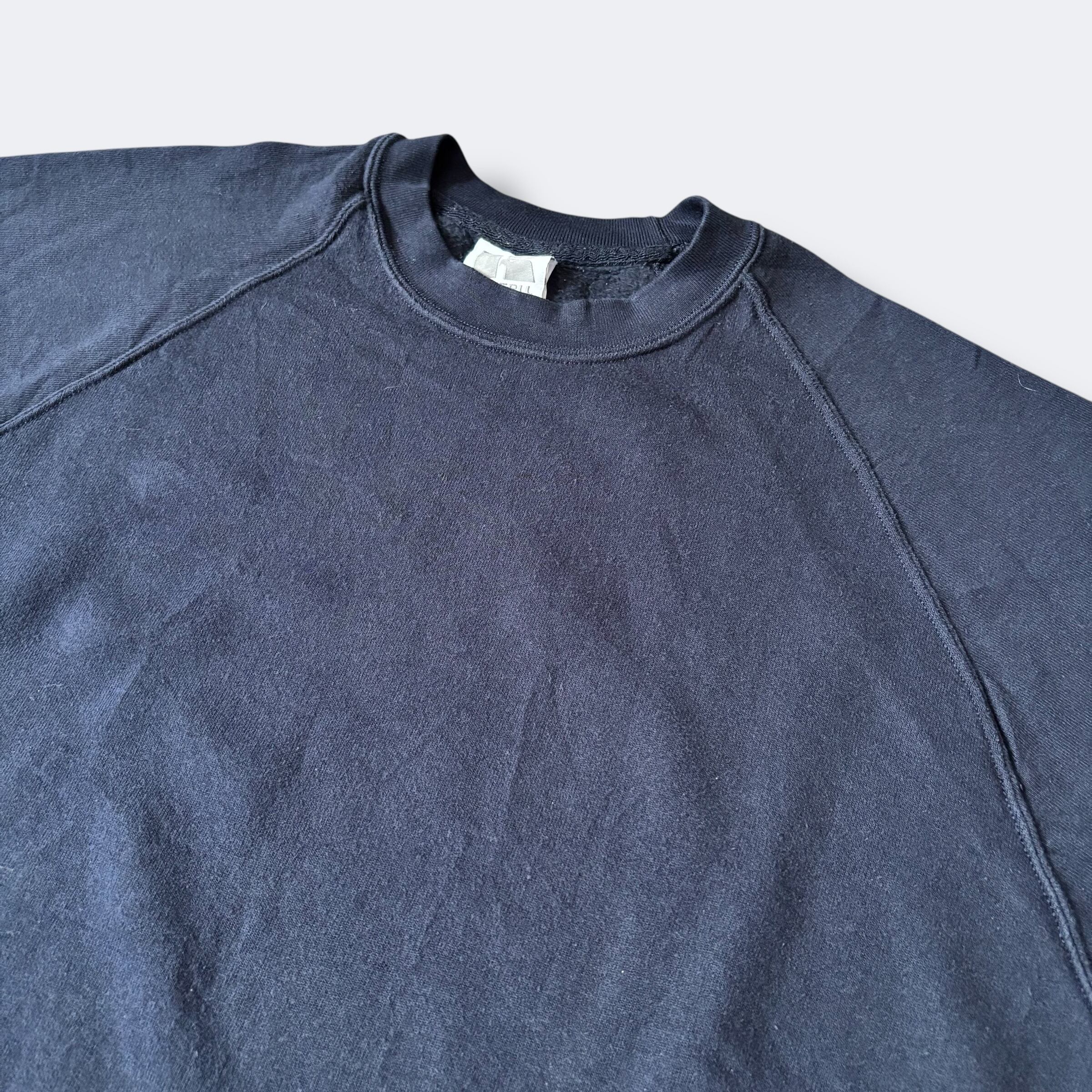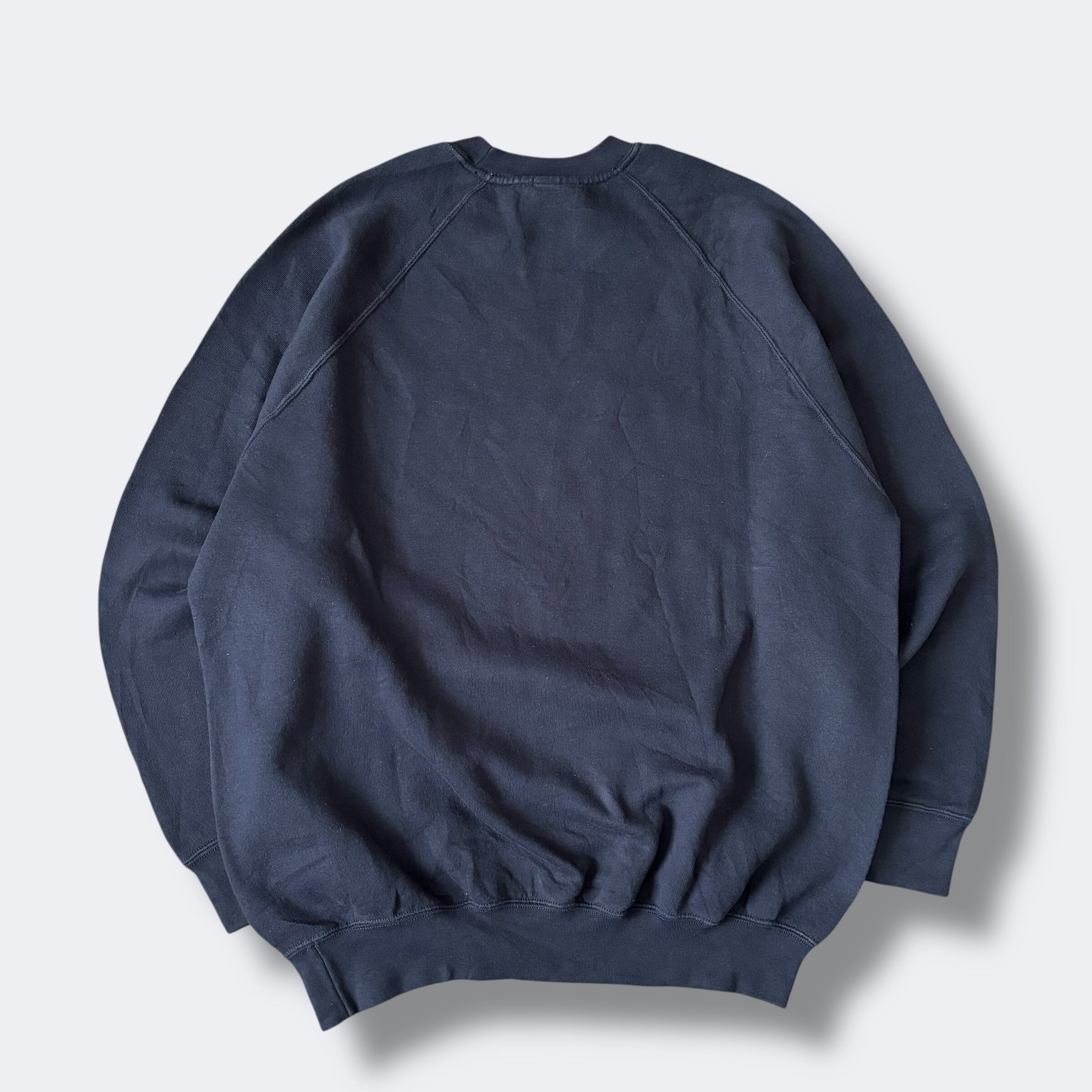 珍しいラグランスリーブ仕様で動きやすく、シンプルな無地デザインが魅力。ヴィンテージらしい風合いを残しつつ、カラーも含め幅広いコーディネートに取り入れやすい一着。