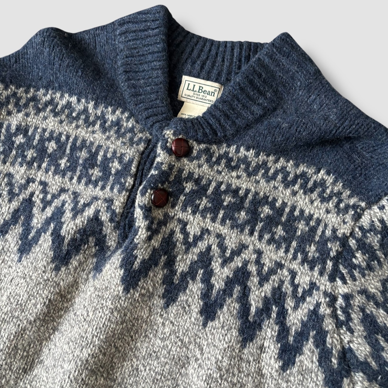 L.L.Beanのクラシックなノルディック柄ショールカラーニット。