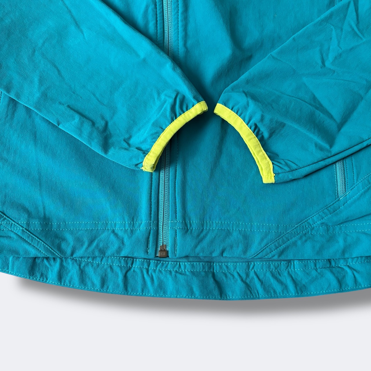 袖口・フード・ジップ周りにはイエローパイピングが施され、配色◎。