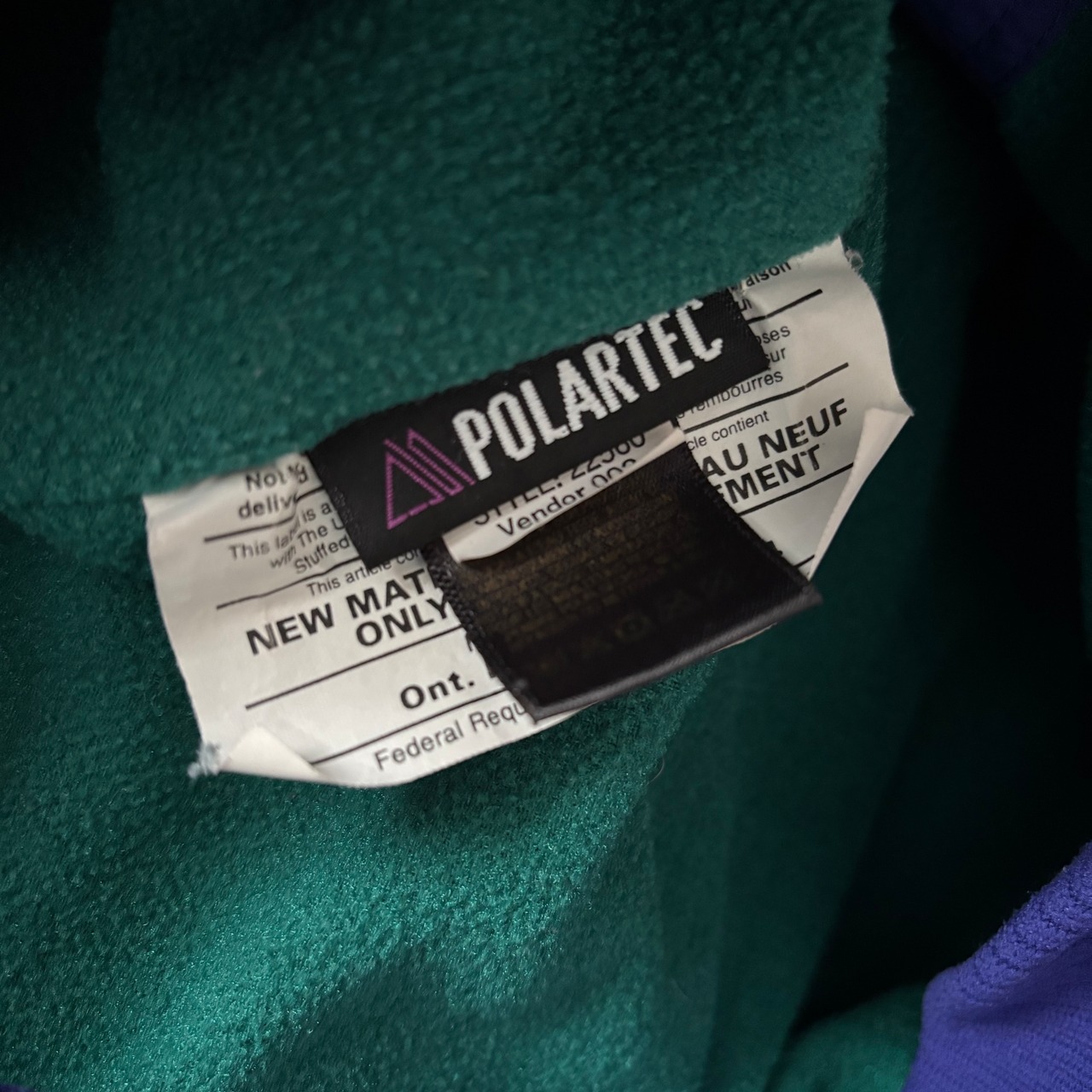POLARTECフリースなど、当時のアウトドアウェアらしい配色が非常に魅力的な一着です。