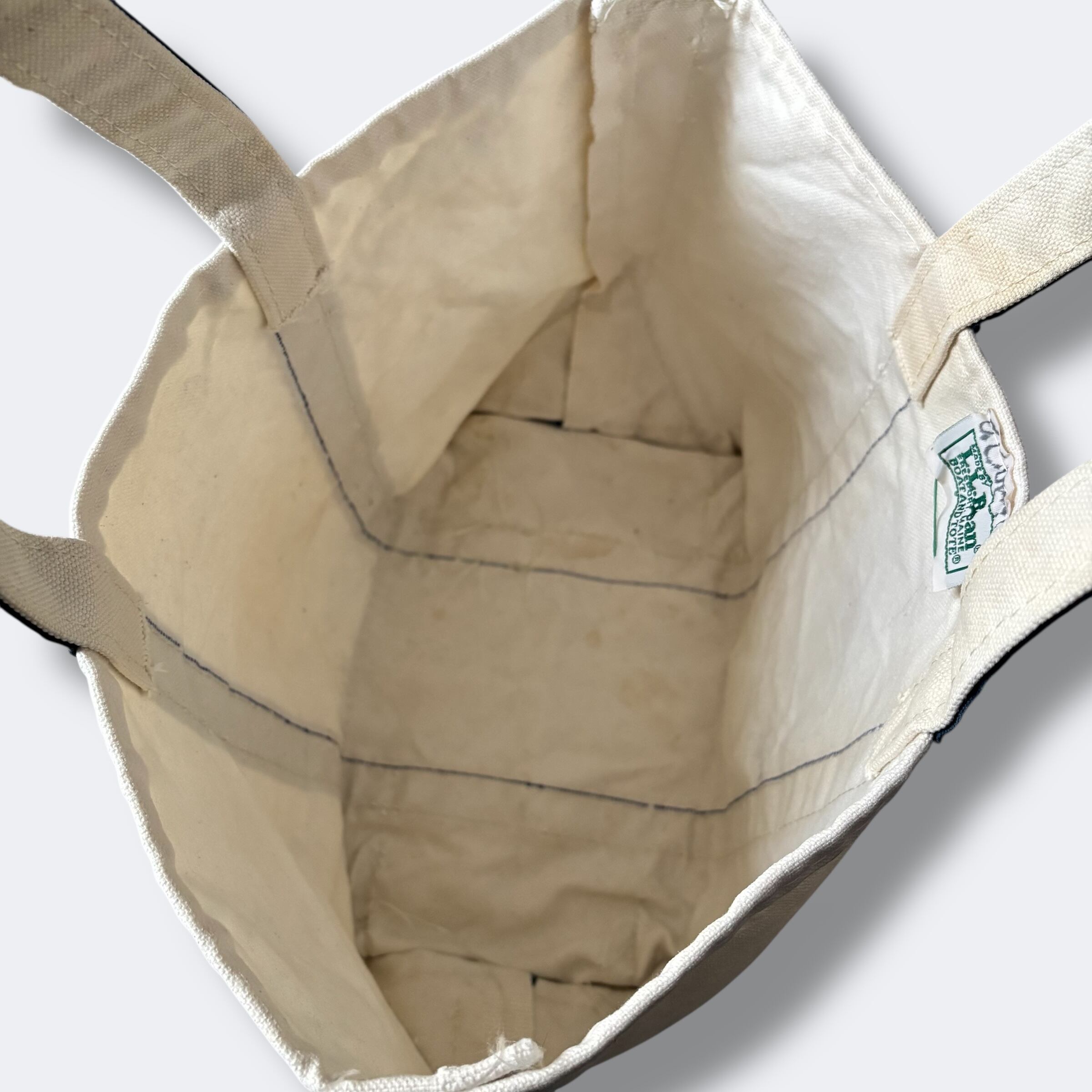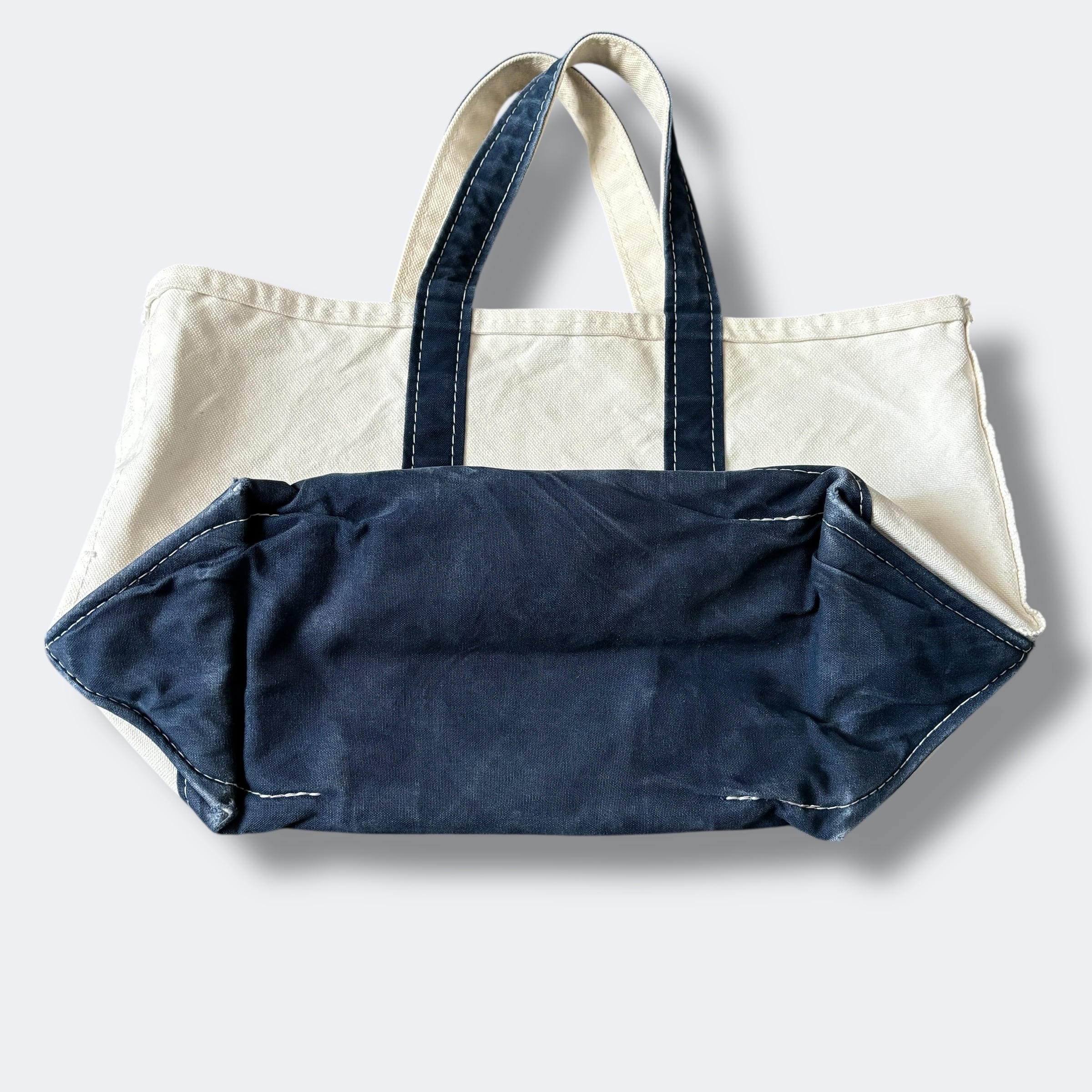 ナチュラルボディにネイビーのボトム&ハンドルの配色は、L.L.Beanらしいクラシックなカラーリング。